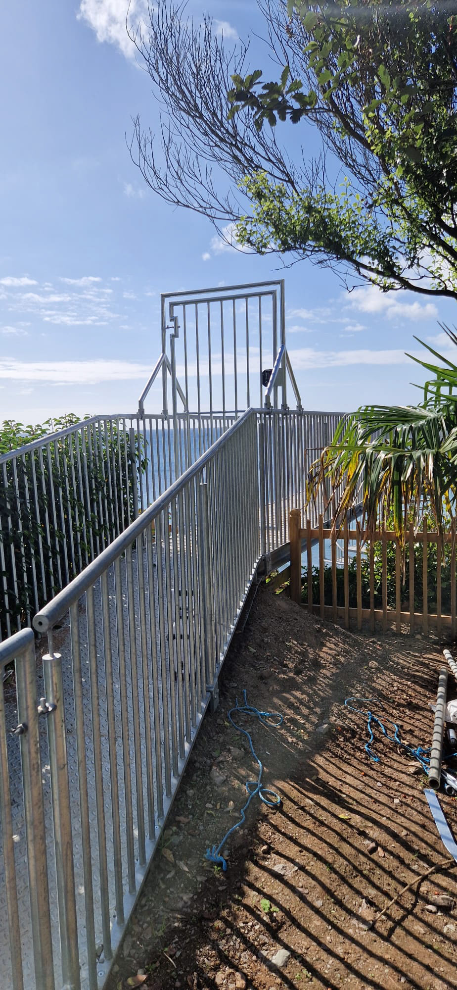 • Access Bridge: With no cranes available at the cliff top, the structural sections were hand-carried to the edge and cantilevered across the 17m drop. Scaffolding Ingenuity, ropework with muscle and team spirit made the impossible achievable.